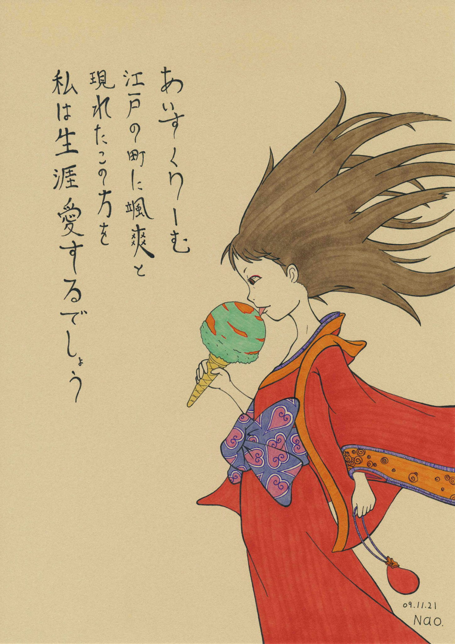 江戸の時代にアイスがあったら皆喜んだろーなーと思って描いたイラスト。