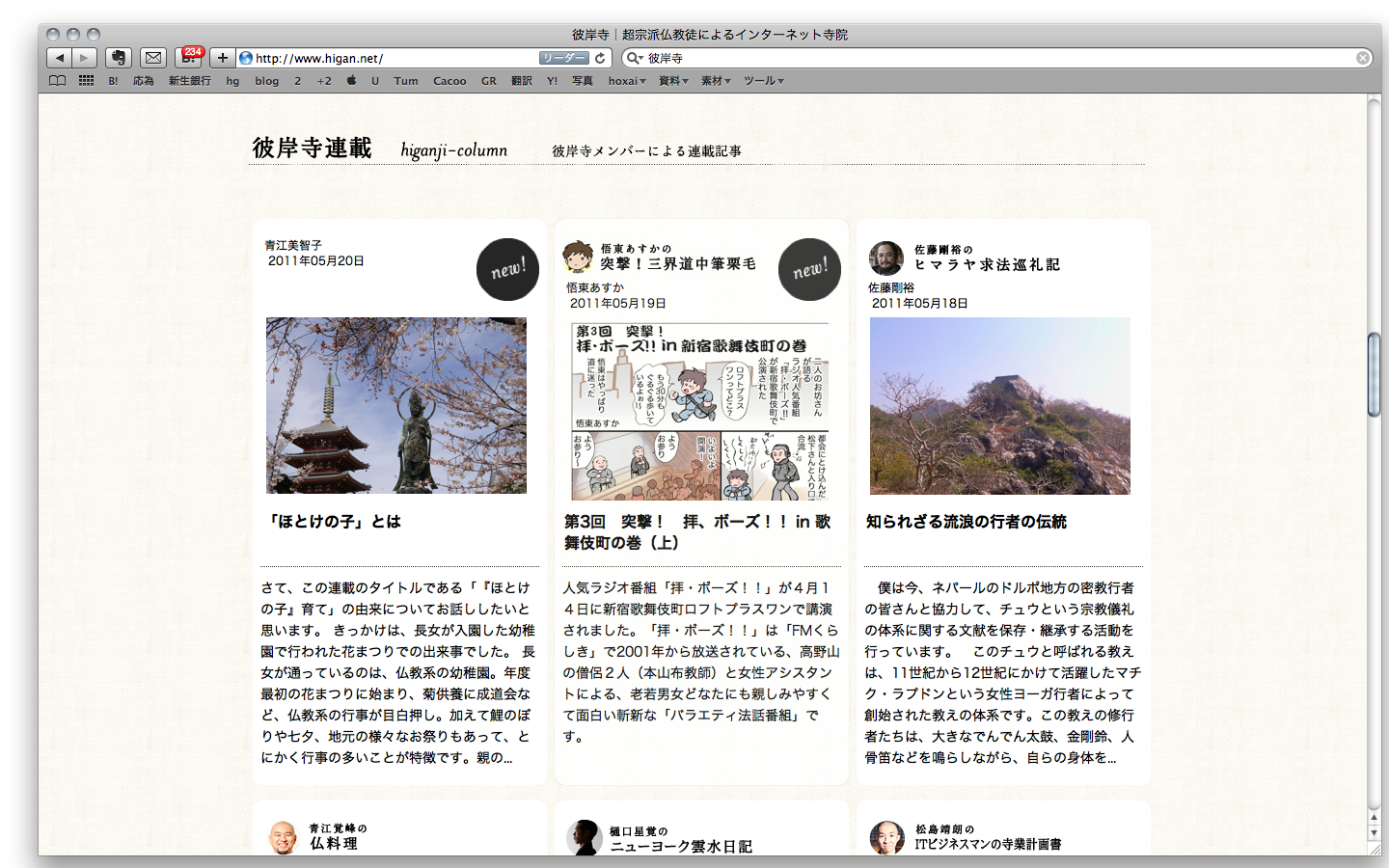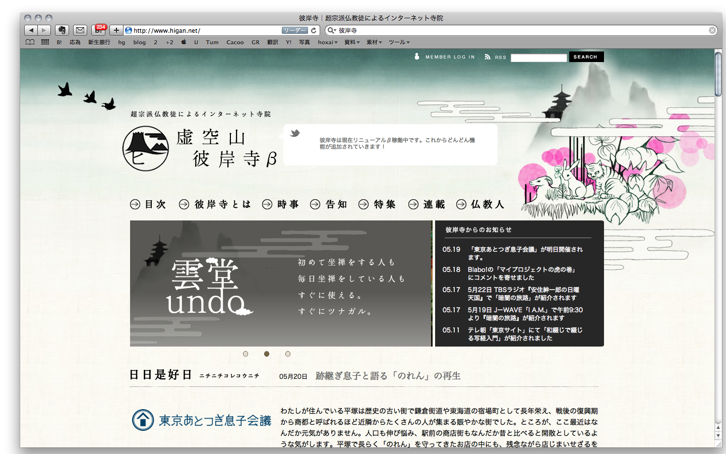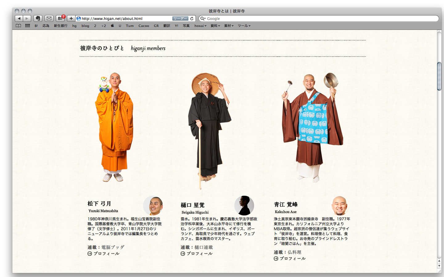 宗派を超えた若いお坊さんたちによる、インターネット寺院のwebサイト。メンバーの方々はタモリ倶楽部でperfumeと共演したりするなど多方面でご活躍。