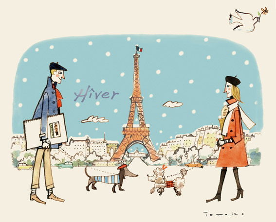 イラストは、フランスを舞台に、ある画家とパリジェンヌの出逢い。