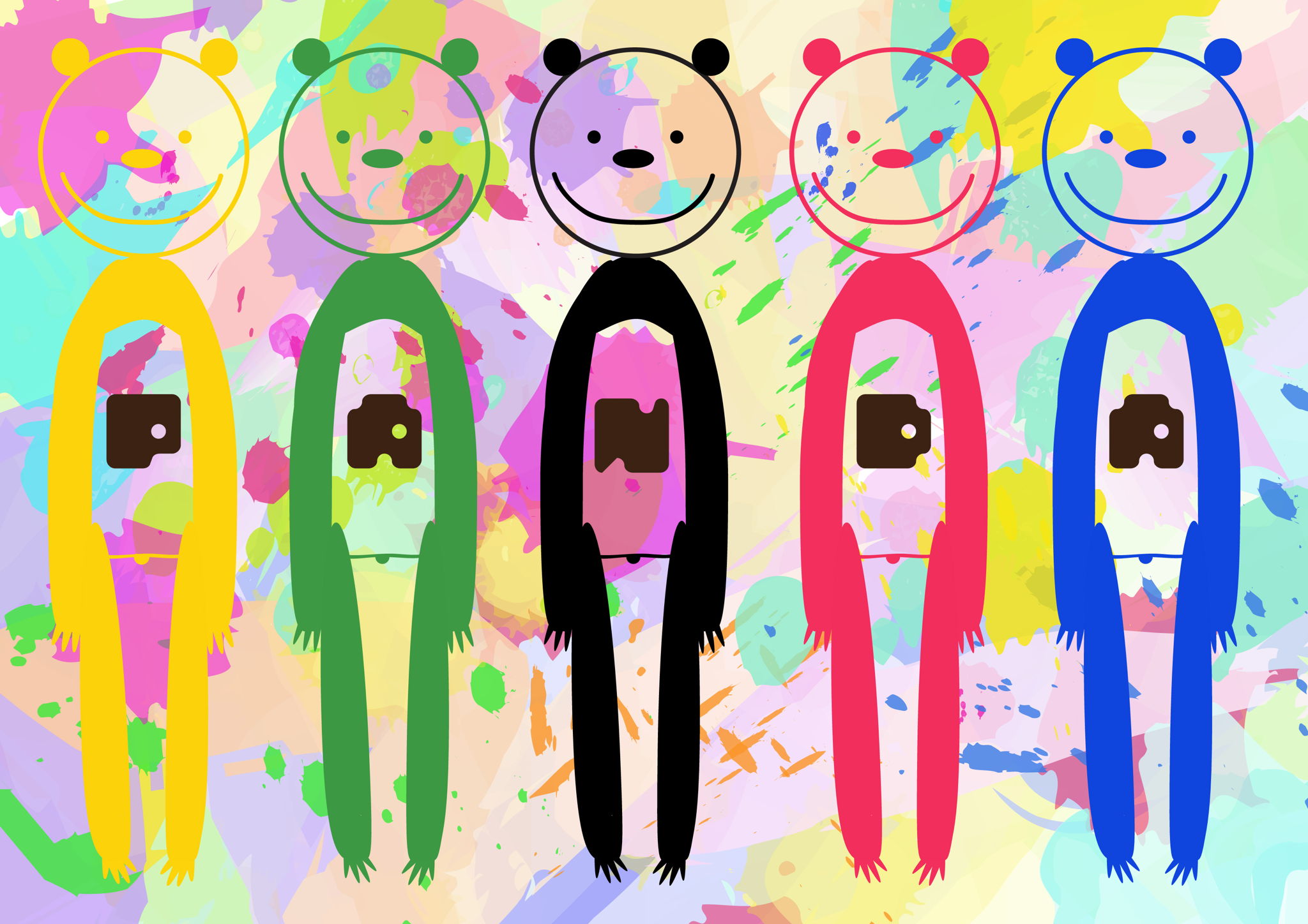 白と黒という少なく単調なパンダをカラフルにする事で明るさを出しました。