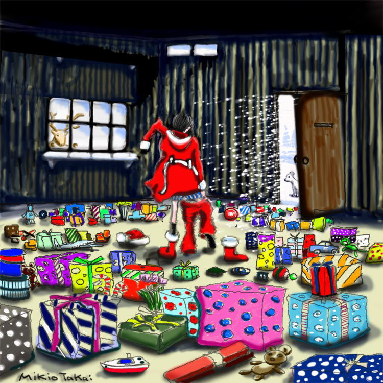 トナカイに突っ込まれてるサンタ。