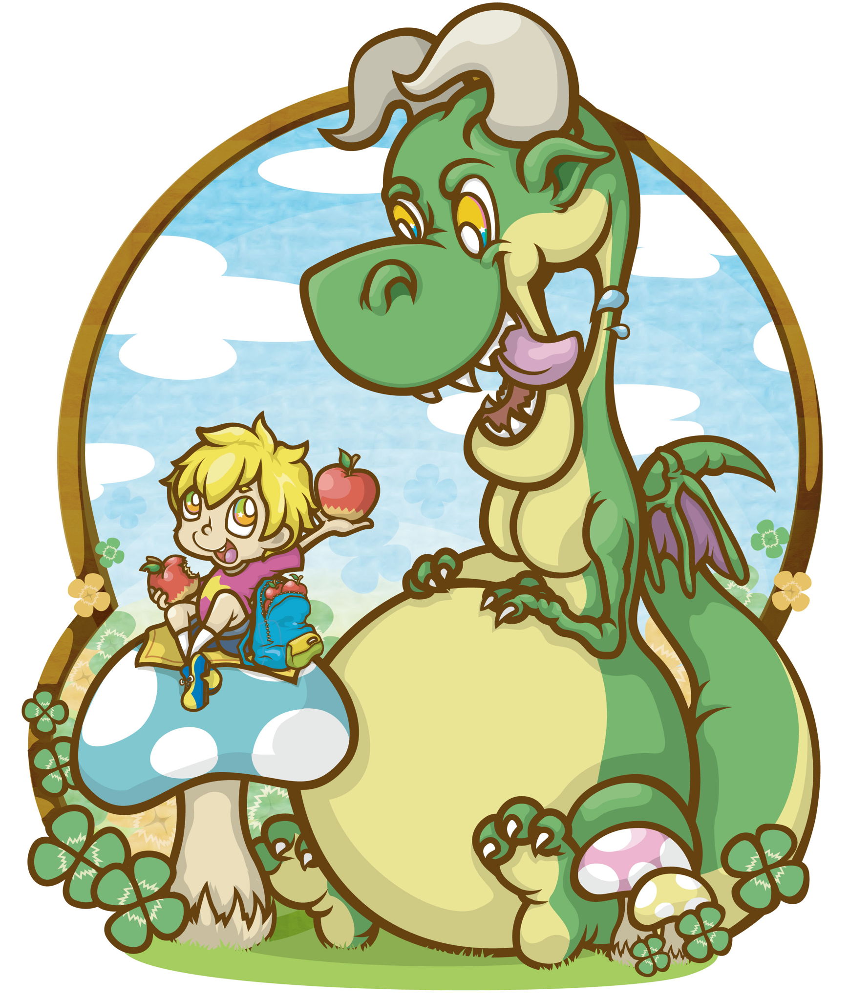エコバックの柄として制作したいらすとです。少年と大きなドラゴンが楽しそうにしていたらカワイイなと思いながら制作しました。