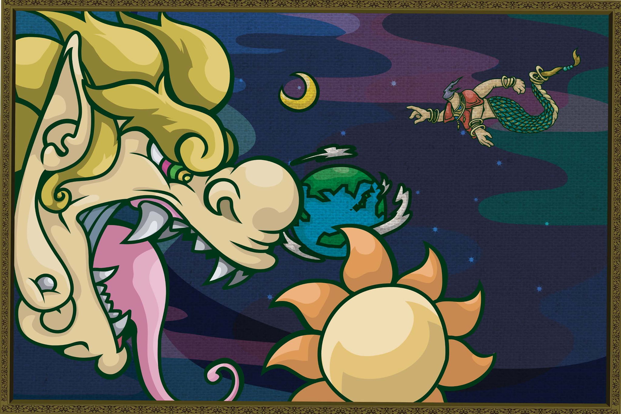 インドの日蝕と月蝕の神話をイメージした挿絵イラスト
