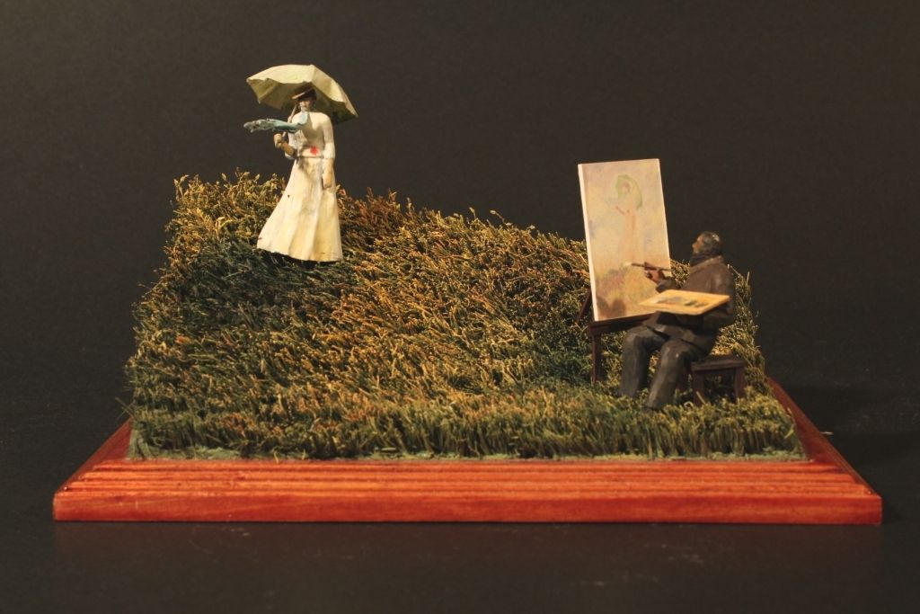 クロード・モネ作「日傘をさす女性」をミニチュアで表現。
