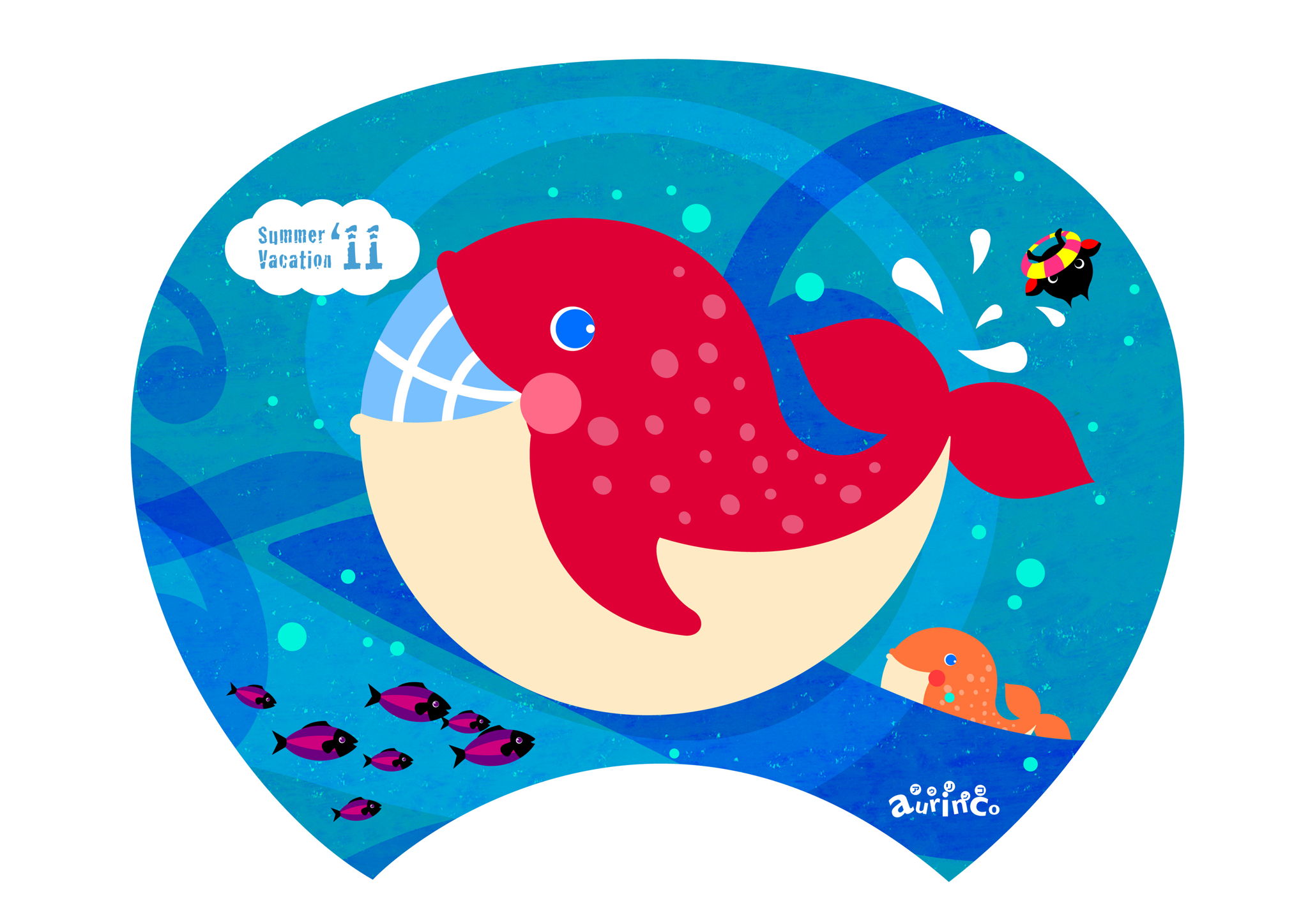 節電のオリジナルキャラクターの電球くんが、夏休みに入り、海におよぎにでました!