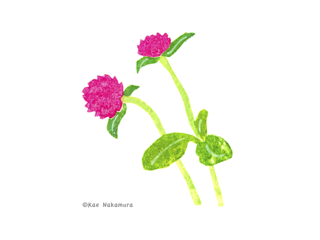 センニチコウという秋の花のイラストです。 by水彩紙版画