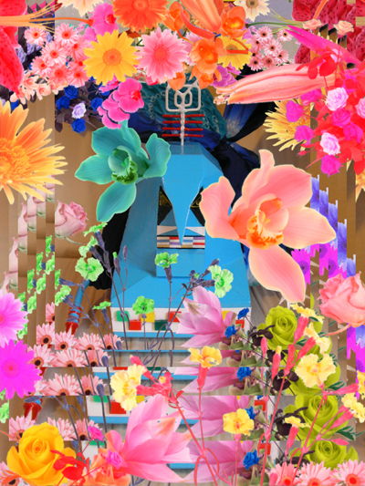 花に囲まれた戦車ロボットです。