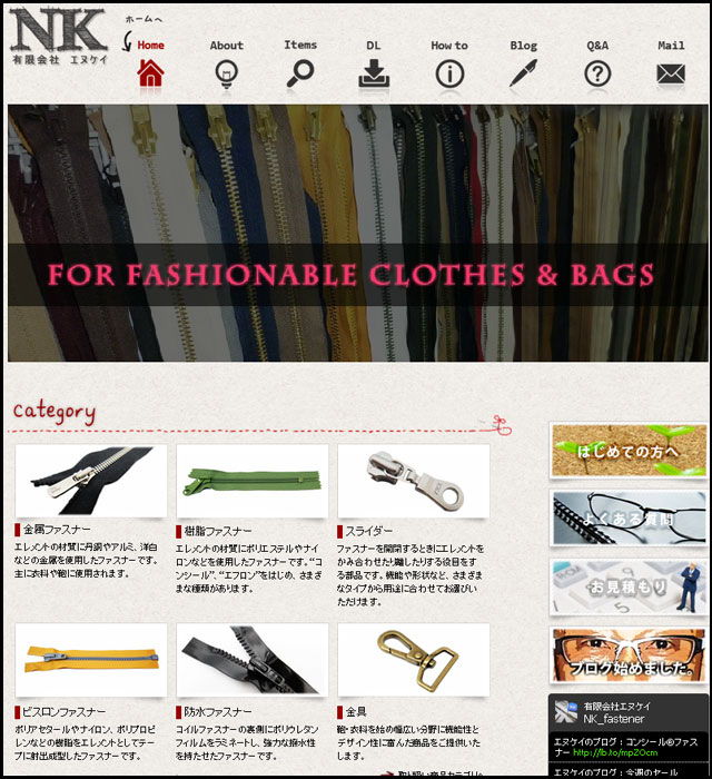 ファスナー代理店のリニューアル。