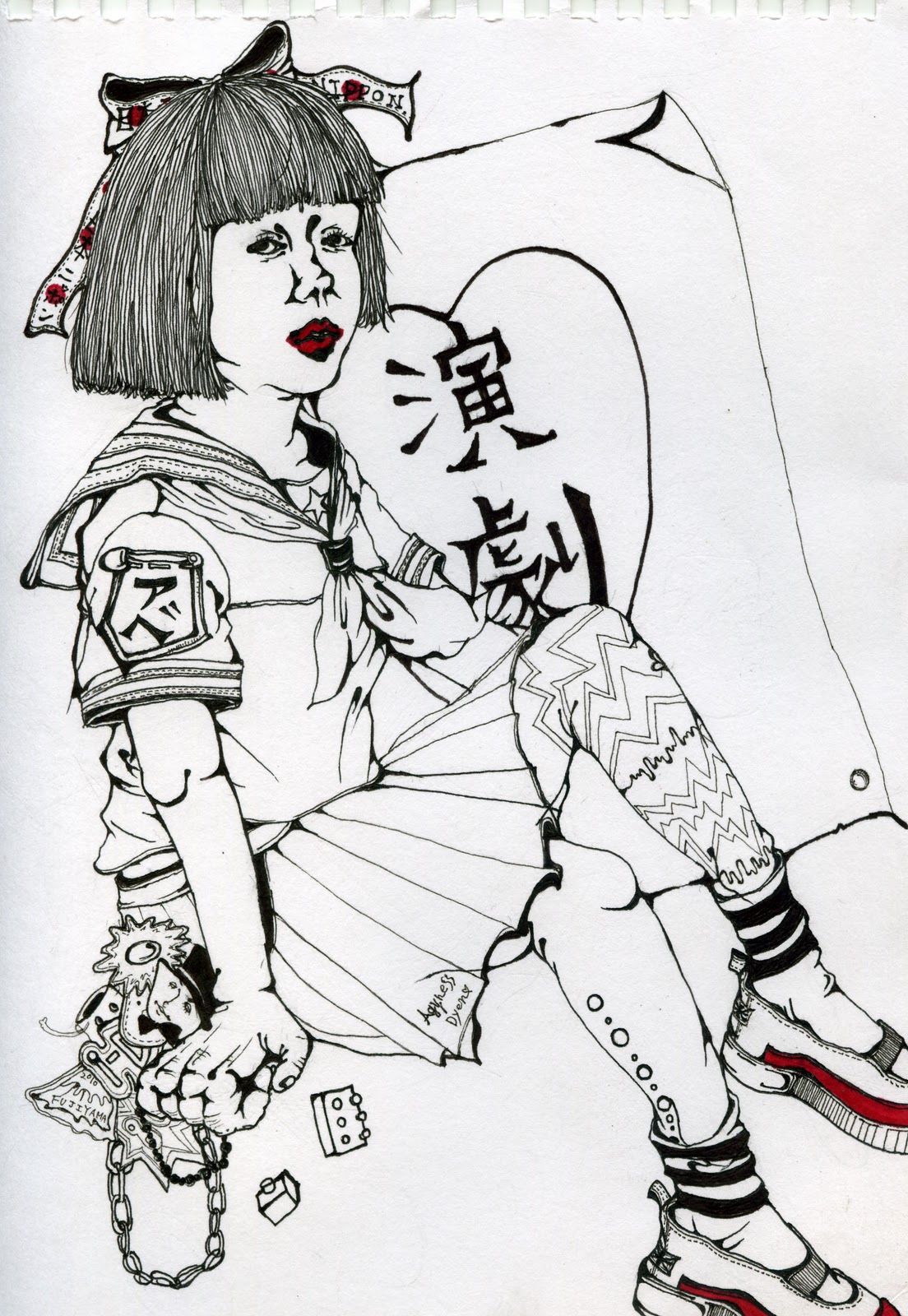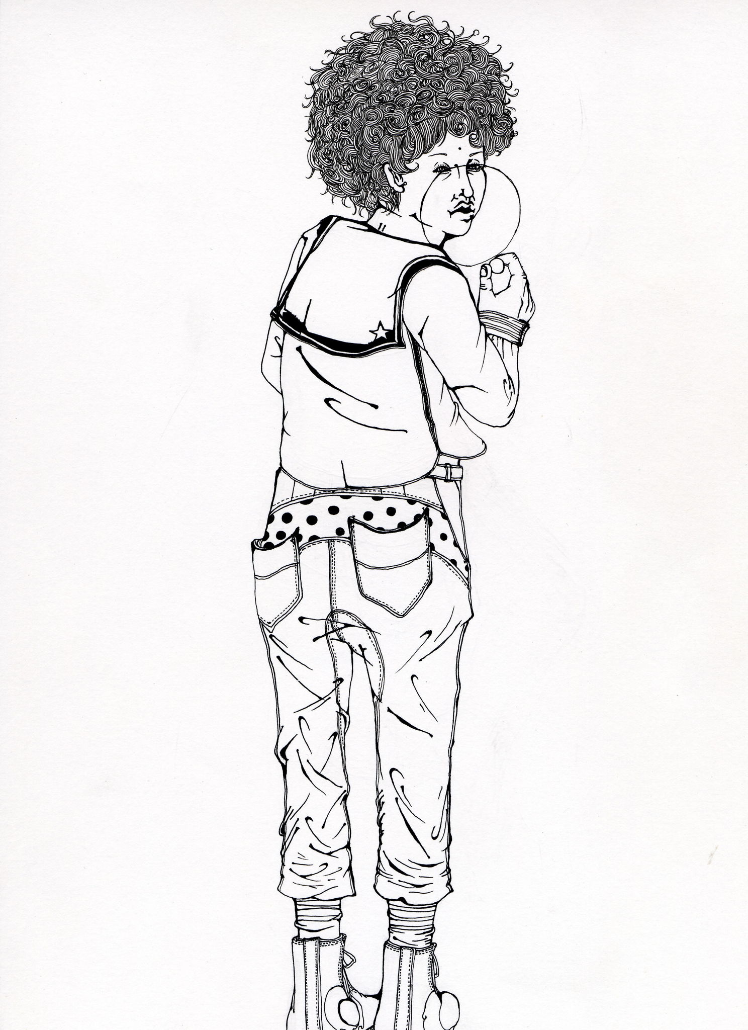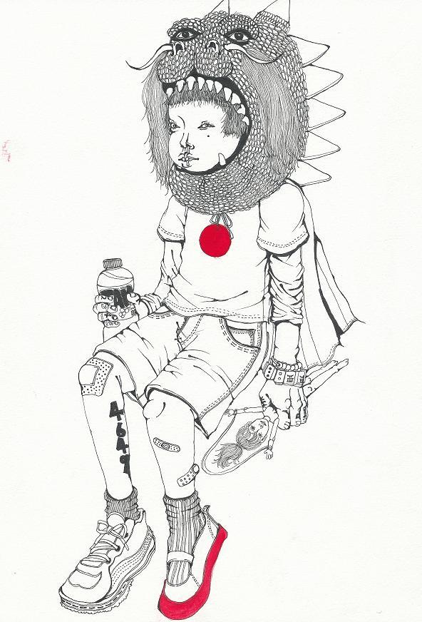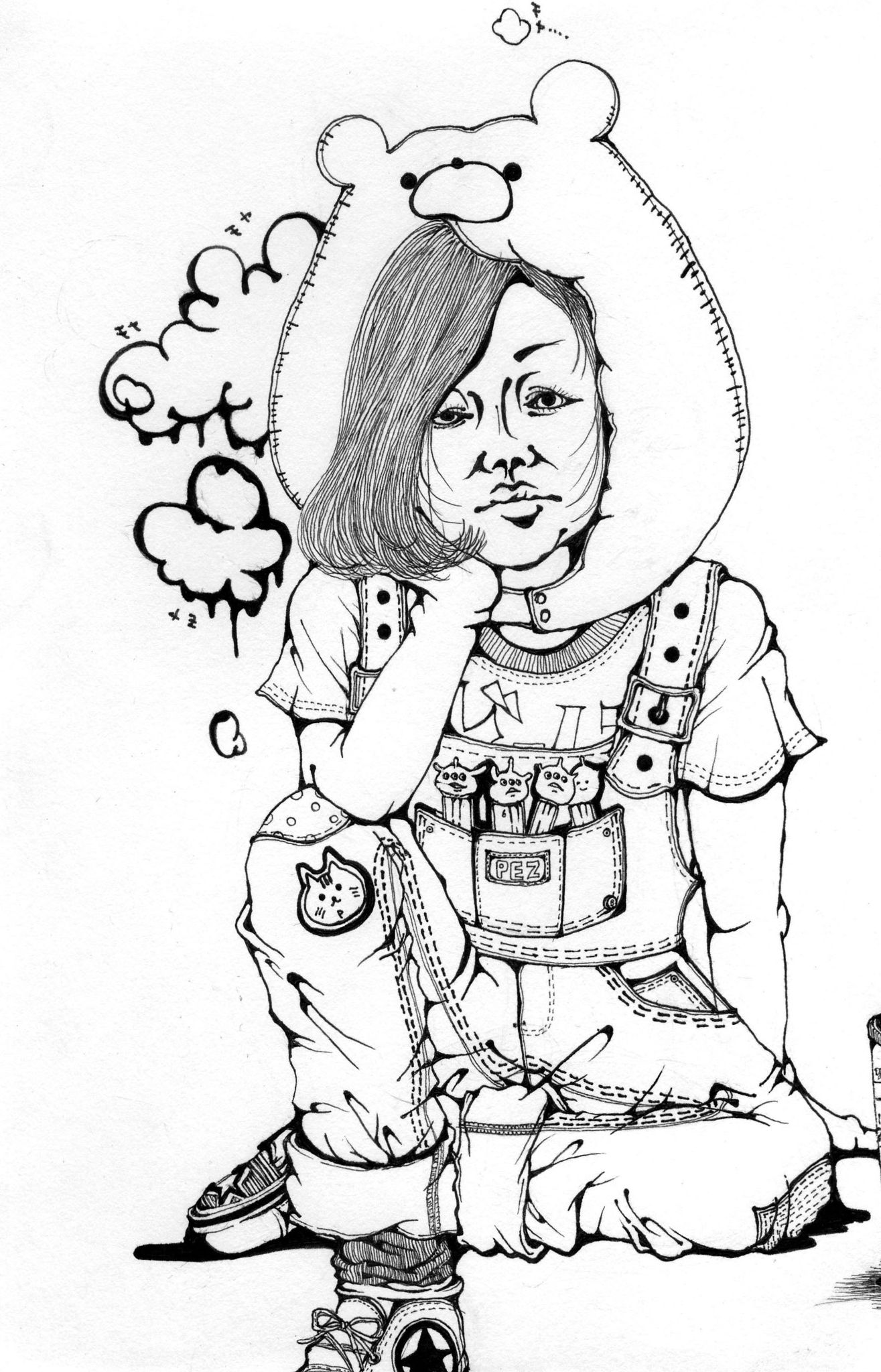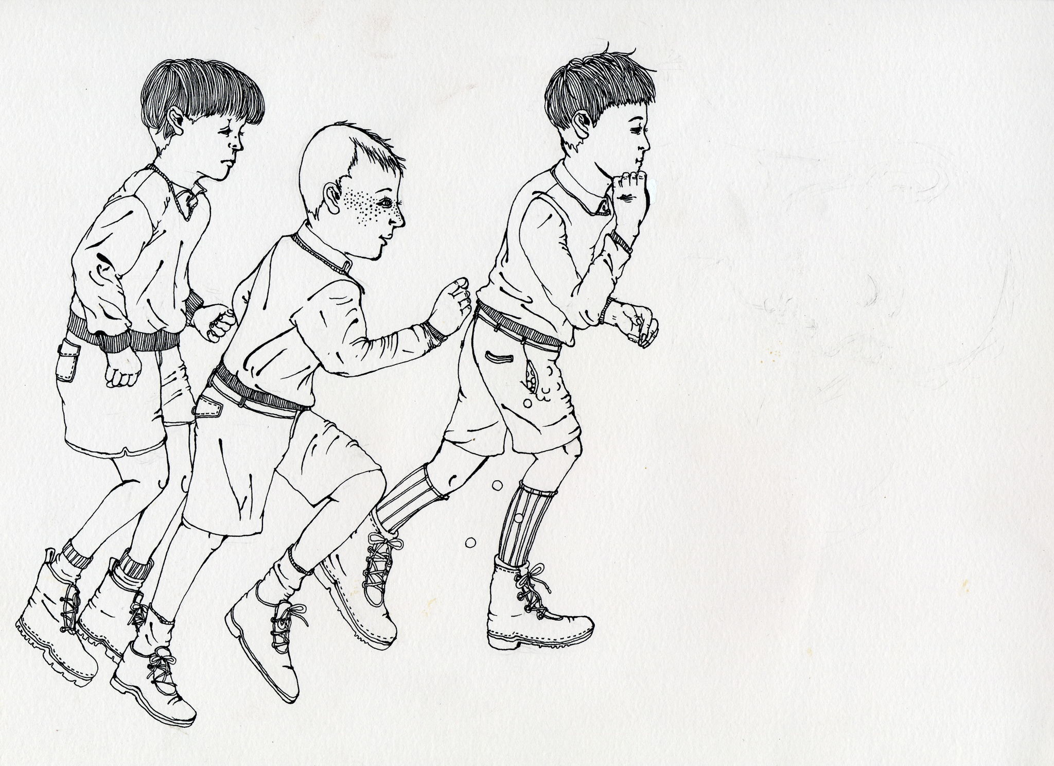 ポケットからぽろぽろ何かがでてる。あめなのか、ビー玉なのかなんなのかしら。