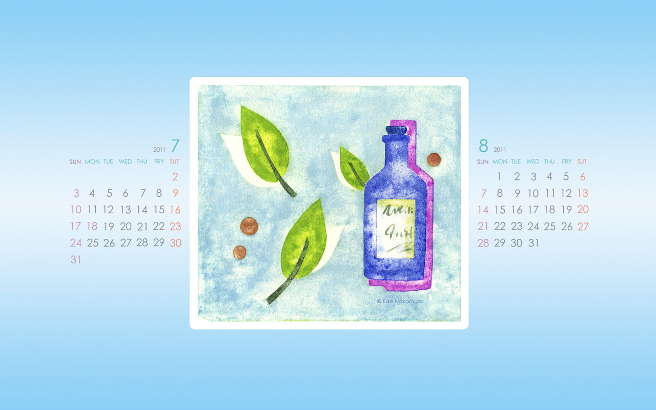 「夏の風」というイラストに、7月と8月のカレンダーが付いています。