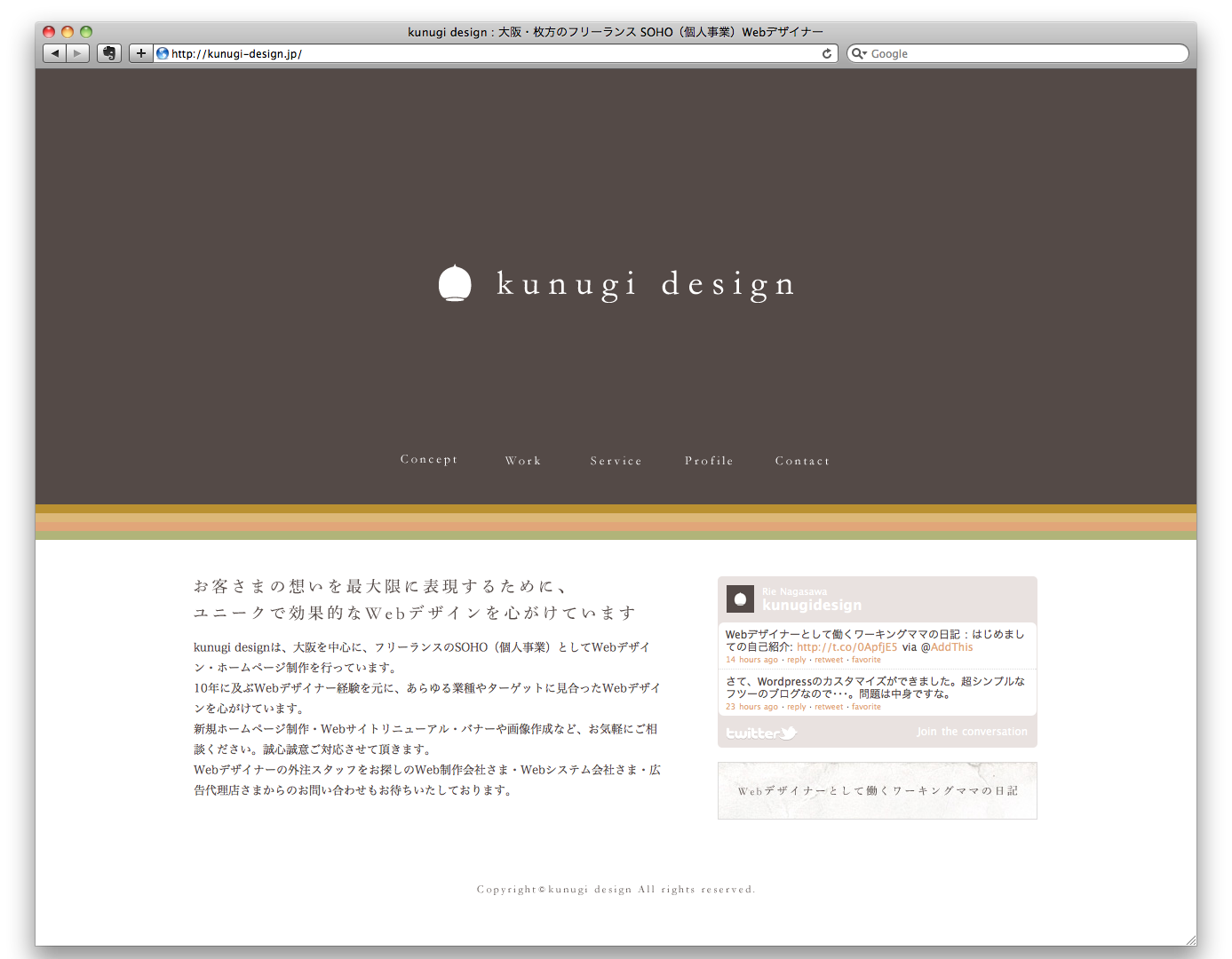 kunugi designは、大阪を中心に、フリーランスのSOHO(個人事業)としてWebデザイン・ホームページ制作を行っています。