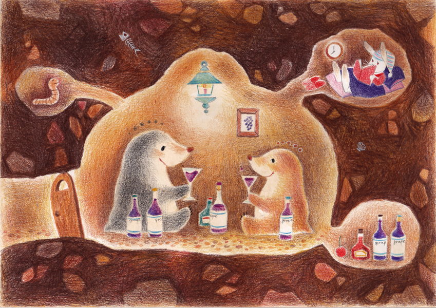 それからみんなは、ぶどうジュースをためたボトルを、だいじそうにもって、それぞれのおうちへ かえります。
