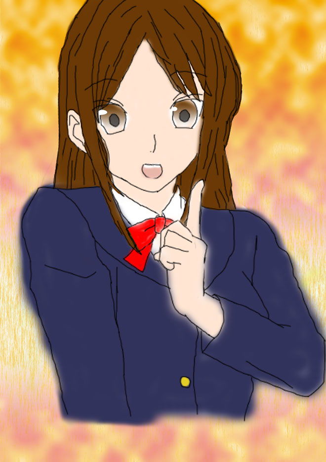 モデルになってくれた子の高校時の制服を着せ、背景は秋っぽいイメージで、紅葉っぽくしました。
