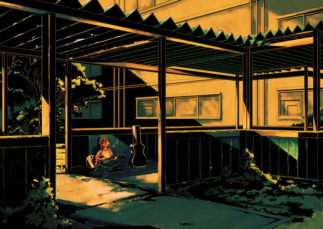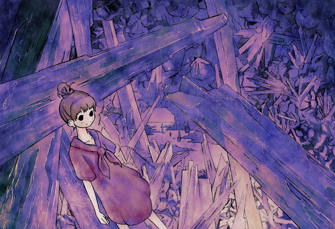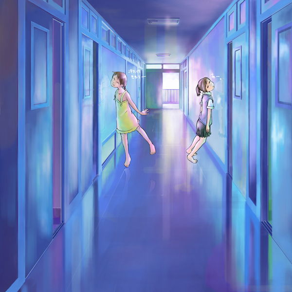 廊下の壁が冷たくて気持ちいいってへばりついていた小学生この頃を思い出して描きました。