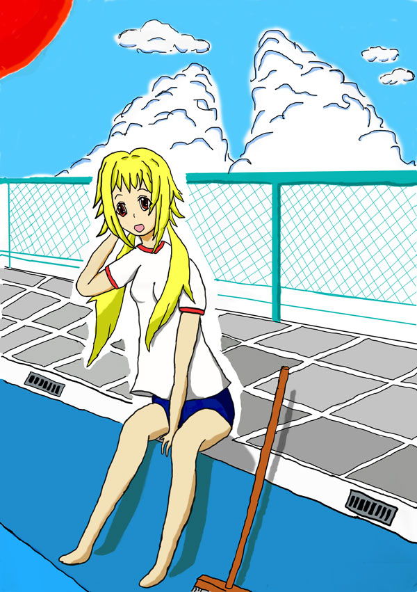 夏を連想させるため、女の子がプールで掃除をしている様子を表現してみました。