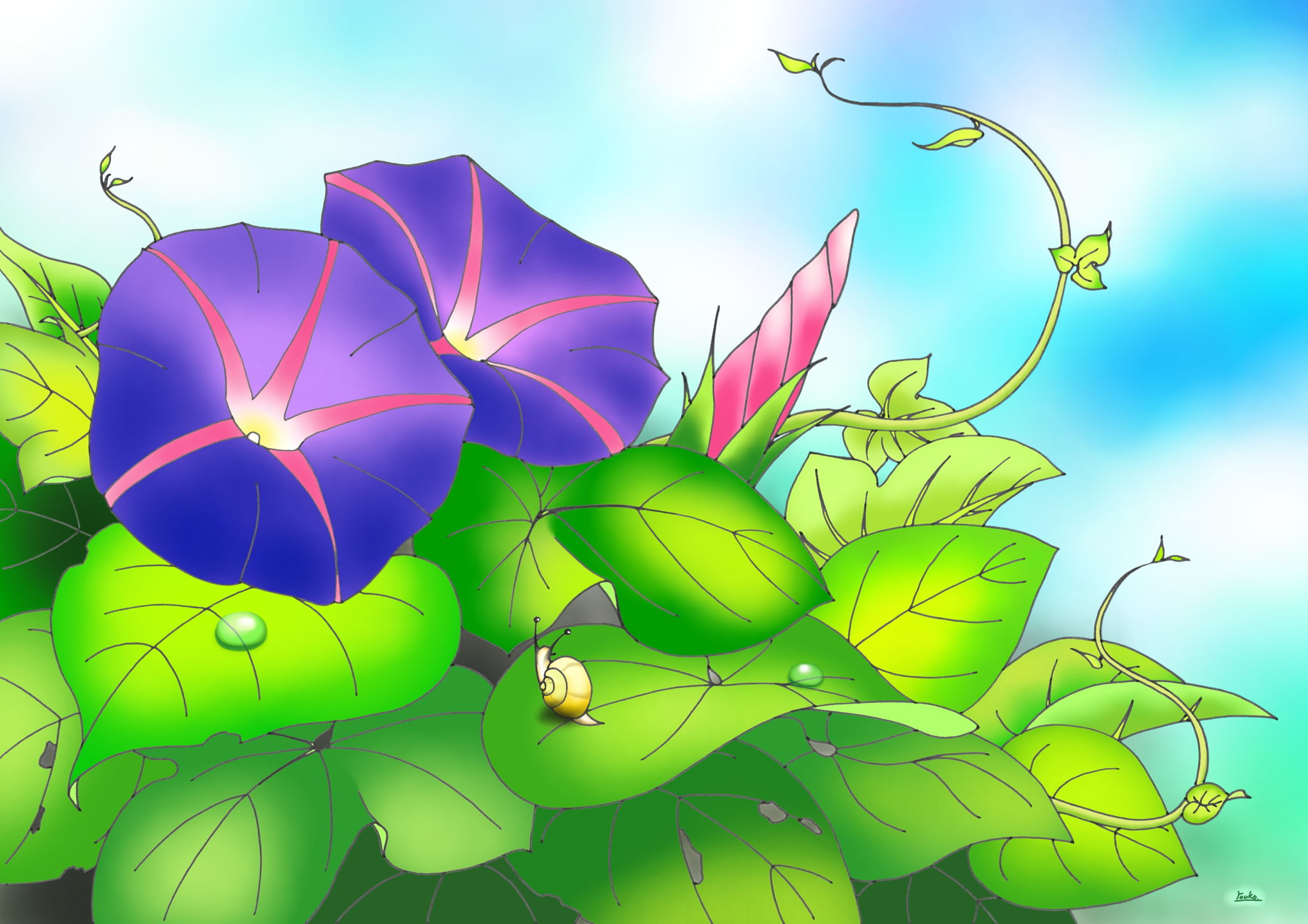 温度を増す空に、『陽射しが強くなりそう…』と心配顔のカタツムリ君と一緒に。