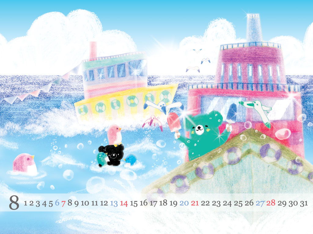 8月壁紙カレンダー(1024×768)