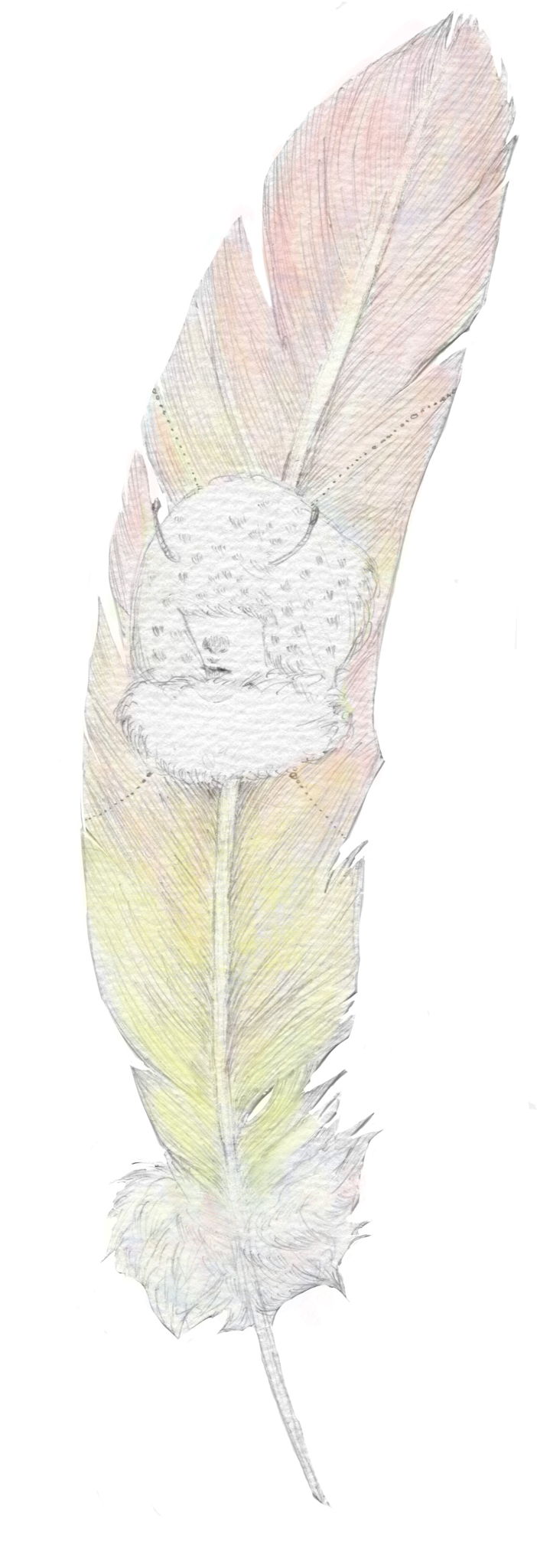 素材/環境:鉛筆、Photoshop。鳥の羽の形に切り取った紙に描きました。