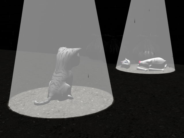 ばらばらに砕けた雌猫を見て、置物だと気付いた雄猫は、ショックのあまりその場で動けなくなってしまった。