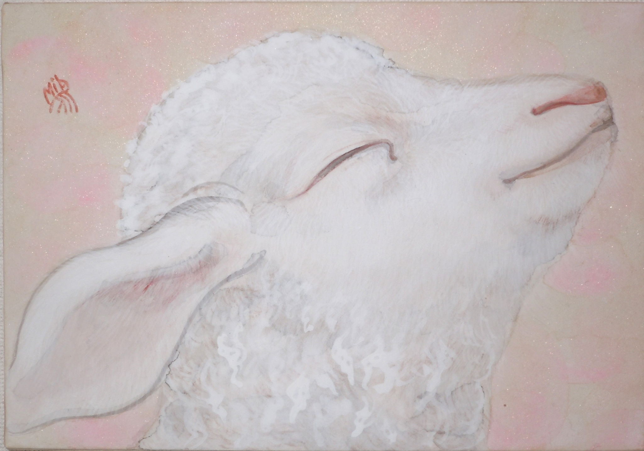 a lamb smiles to the sun, in the pink breeze