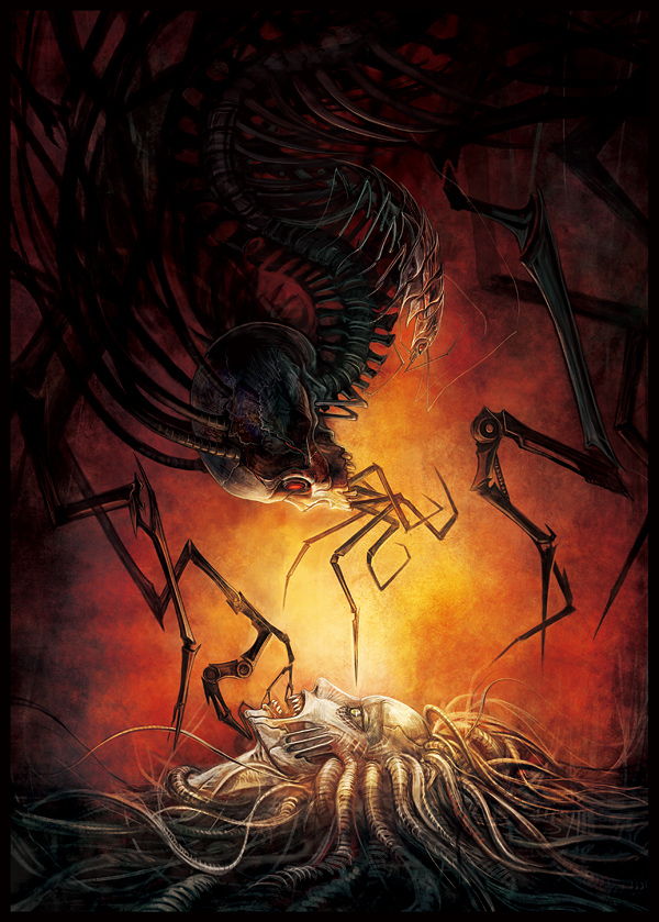 骸骨のような姿と女性の姿、二つの顔を持つキャラクターを組み合わせてみました。
