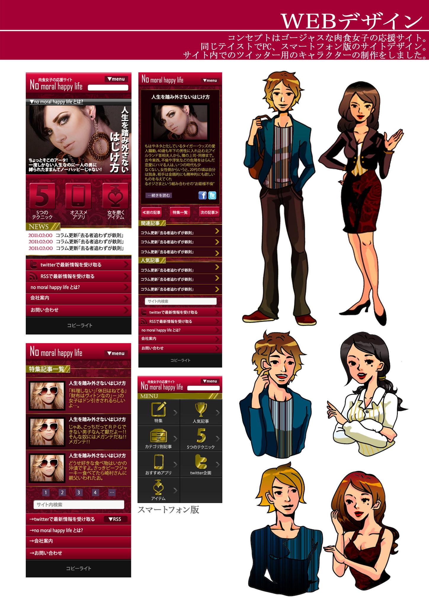 肉食系女子サイトのスマホサイトデザインとキャラクターデザイン