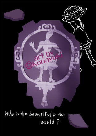 新聞紙で鏡とレディを切り、背景はちょっと鏡が割れているように。