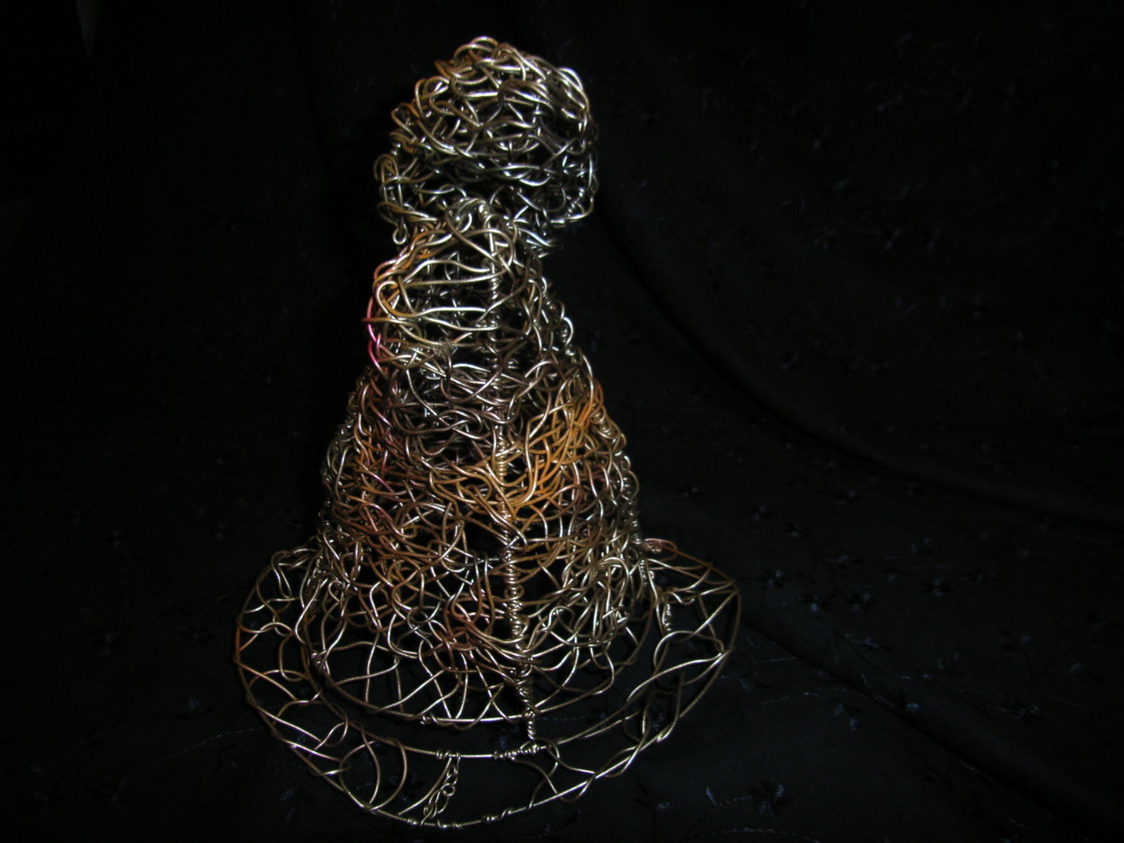 ワイヤーアート。電灯を中に置いて使うことを頭に入れて作ったもの。