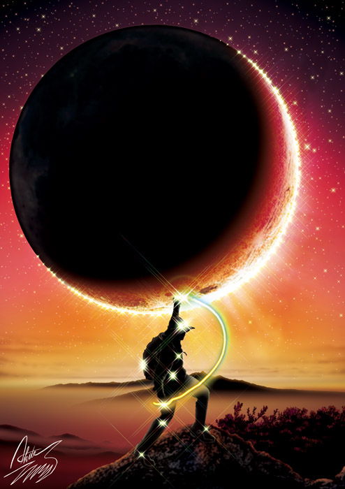深夜の森林限界に浮かぶ三日月のエッジが美しく太陽光を反射している…