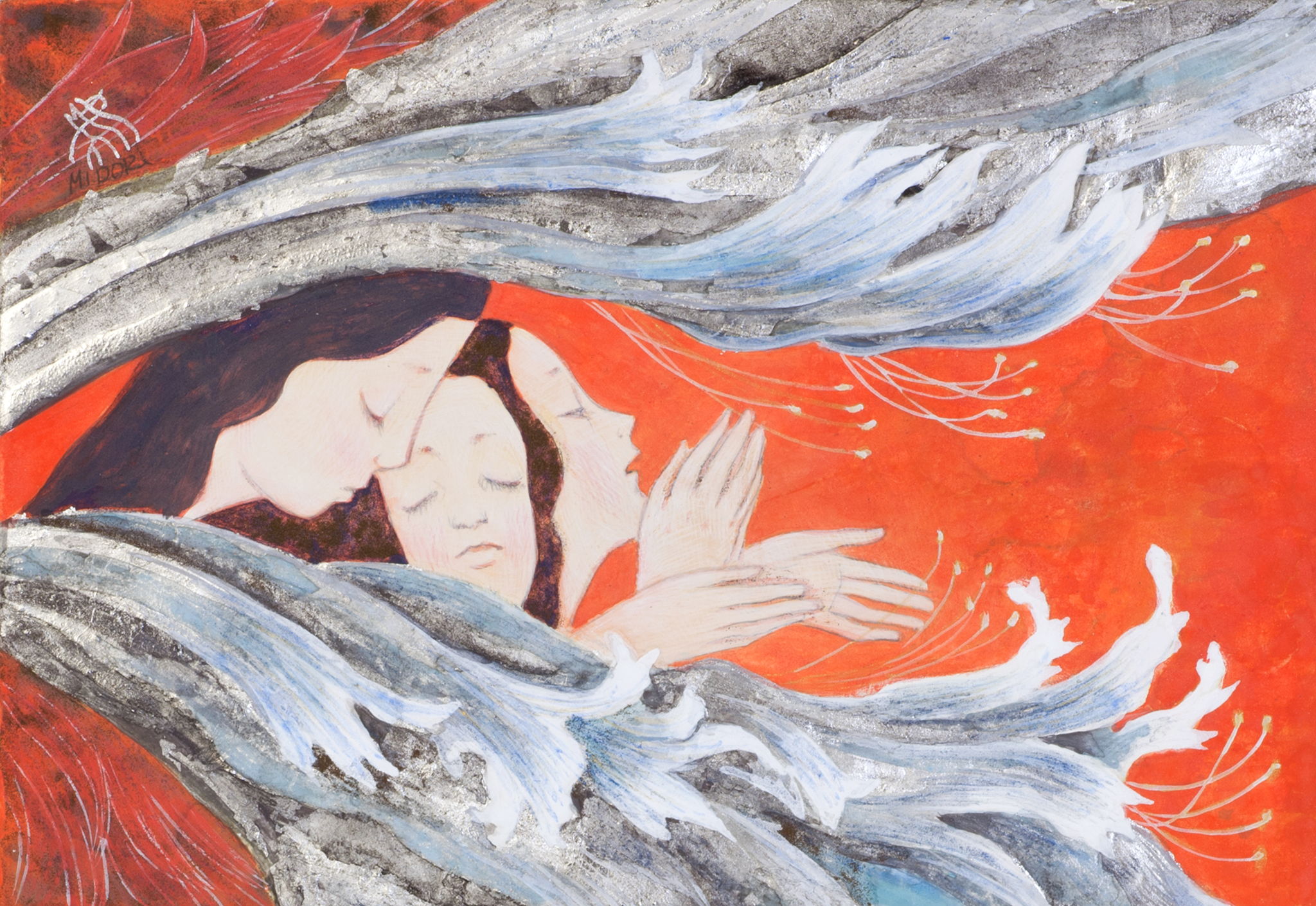 サイズ サムホール パネルに和紙 プラチナ箔 日本画材料使用