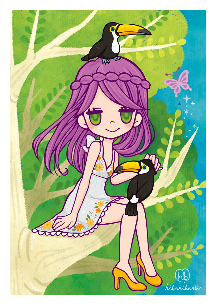 鳥とオンナノコの組み合わせのシリーズです。2011年の8月の展示に出展しました。