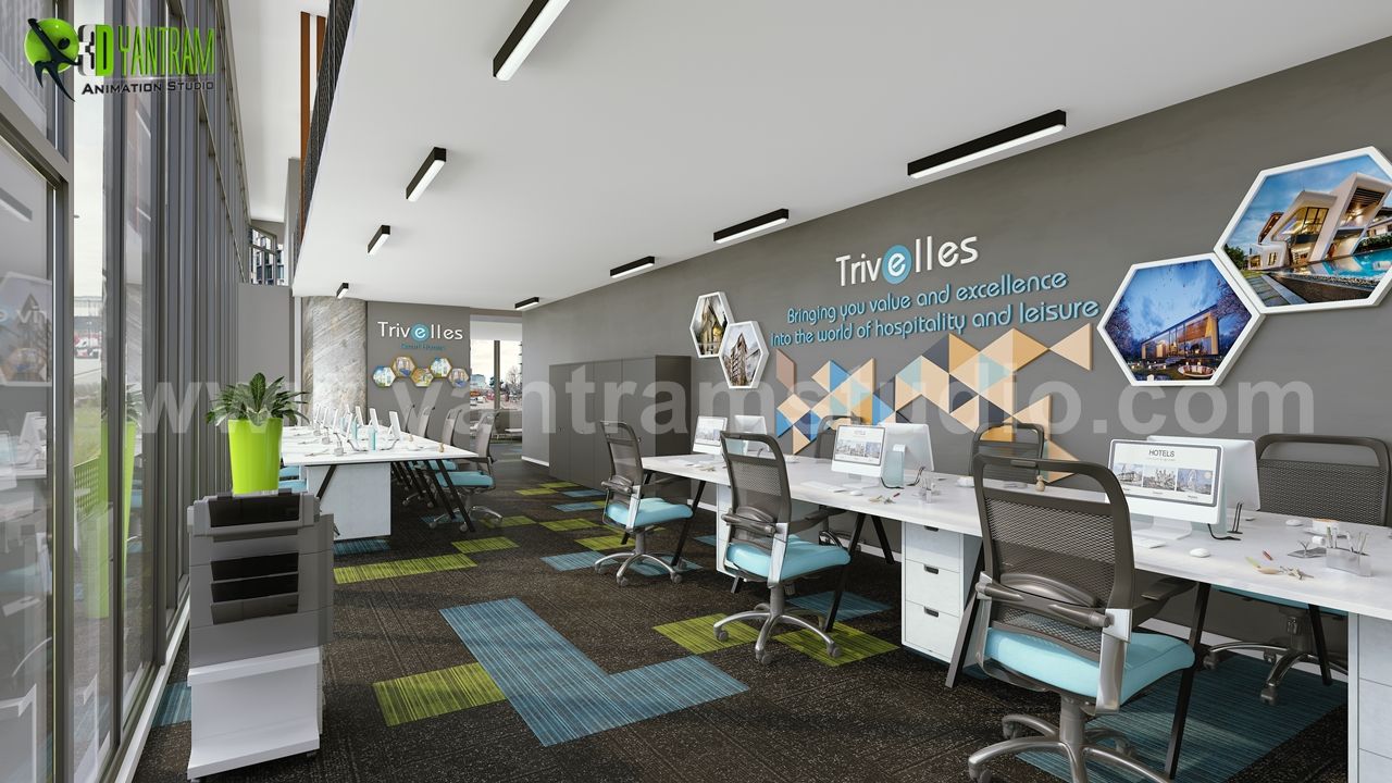 Yantramの建築レンダリング会社、ドバイ - アラブ首長国連邦による革新的な3Dオフィスインテリアデザイン