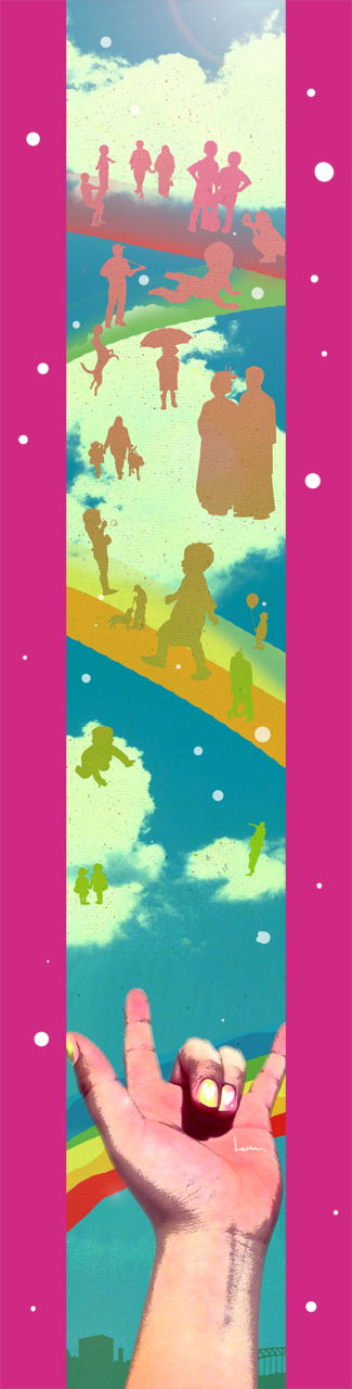 この手の形は、手話で「愛してる」を表しています。大きな家族愛をテーマに制作いたしました。