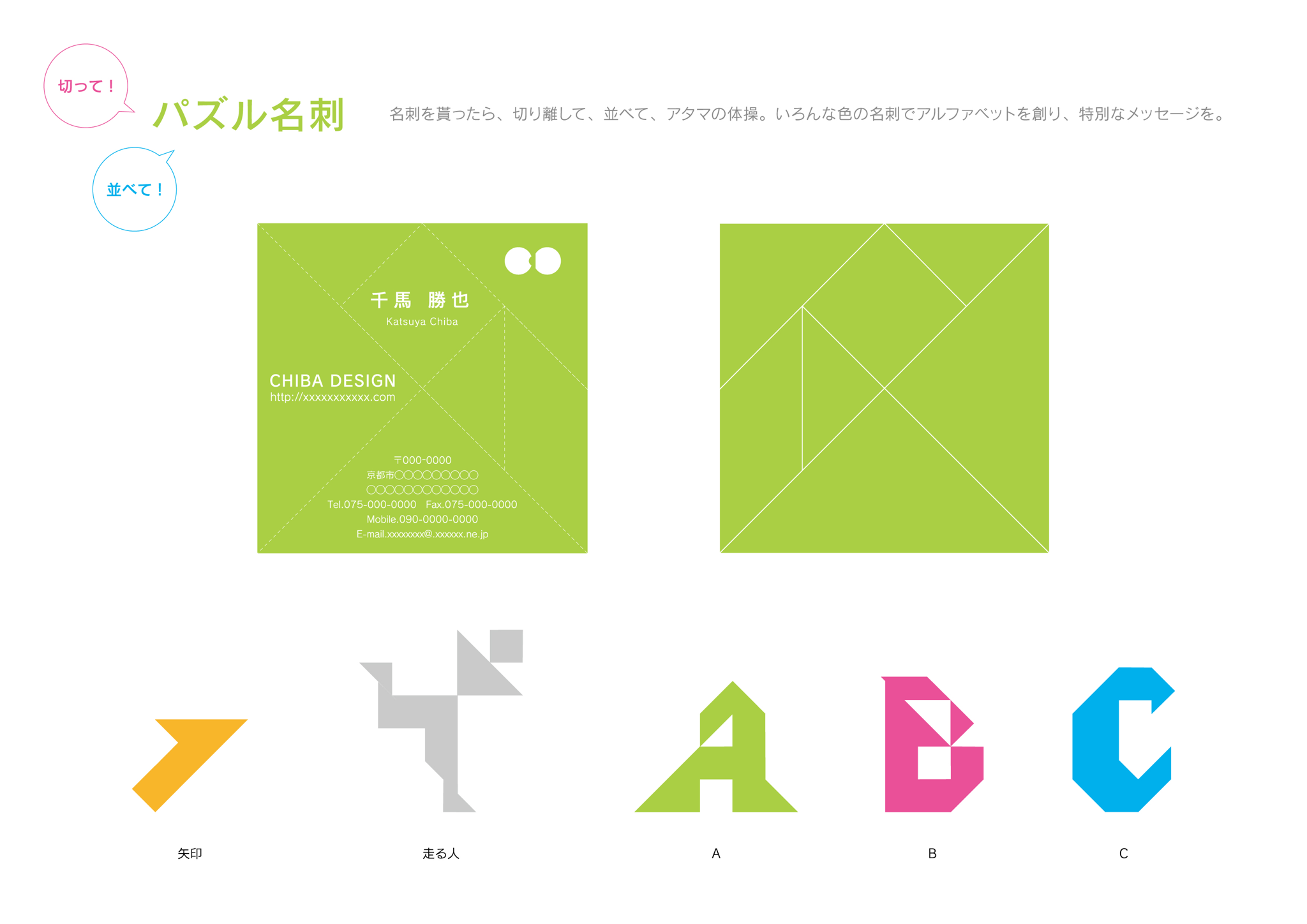 その“タングラム”の形状を名刺に置き換える事により、