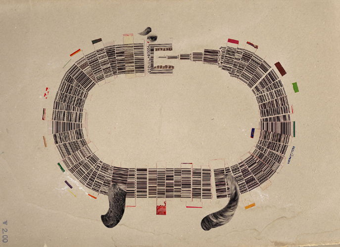 ペン、コラージュ、イラストレーター、フォトショップ、絵具