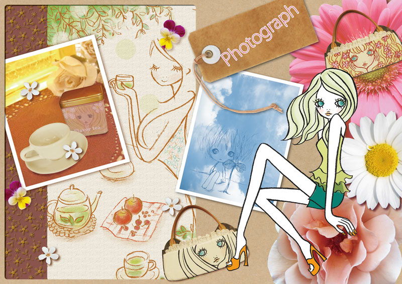 写真とイラストのコラージュです。