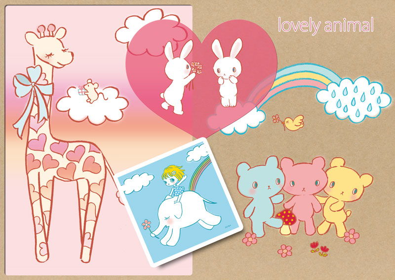 子供向けの動物のイラストです。クマさん、ウサギさん、キリンさんなど…。