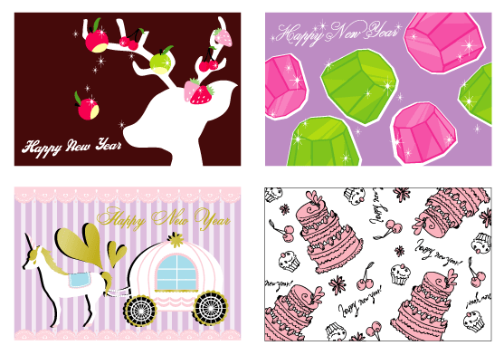 かわいいラブリー年賀状、クリスマスカードデザイン