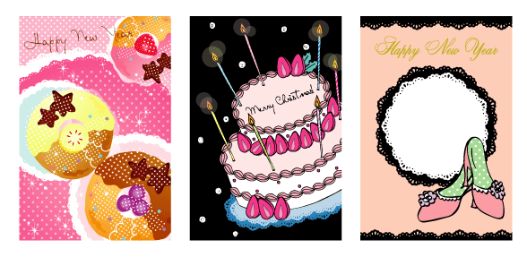 かわいいラブリー年賀状、クリスマスカードデザイン