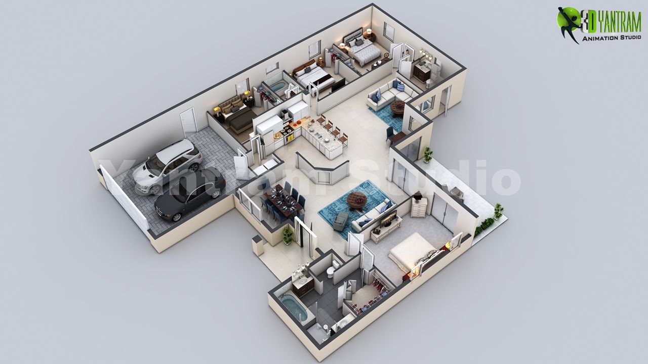 Yantramの建築可視化スタジオ、ニューヨーク - アメリカによる豪華なヴィラデザインの3D仮想間取り図
