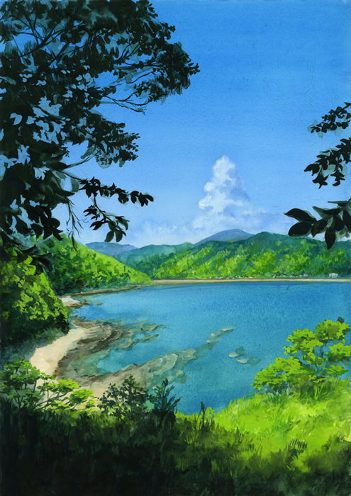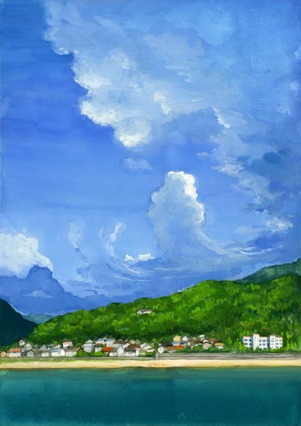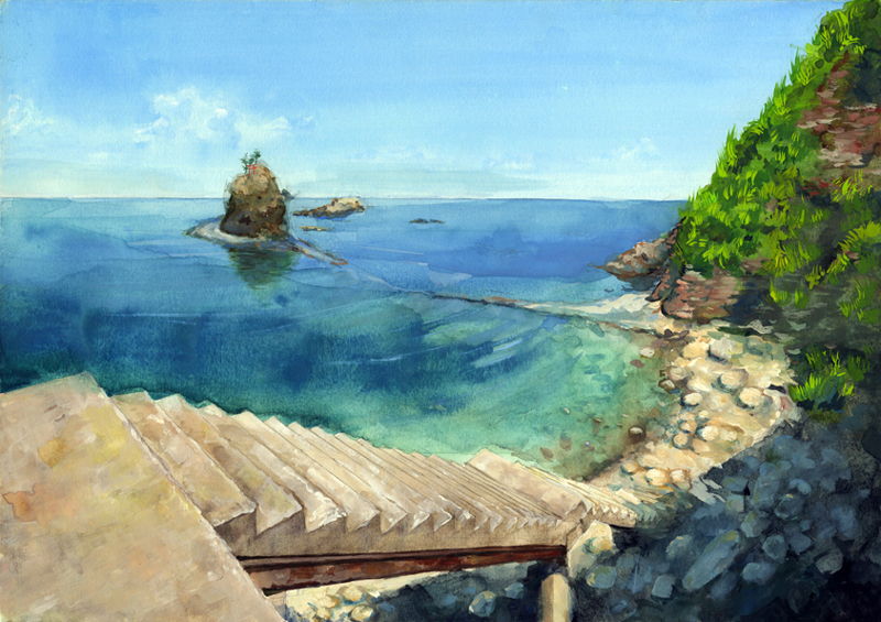 夏の海と弁天岩