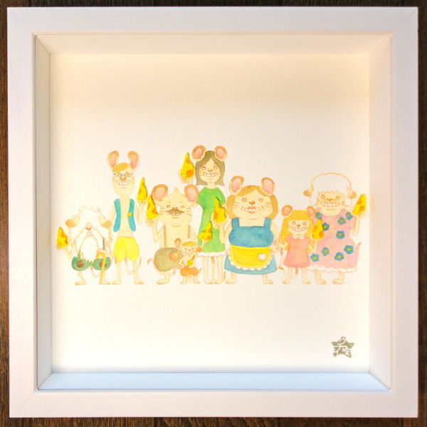 かけがえのないをテーマに制作。透明水彩と一部にフェルトを使っています。