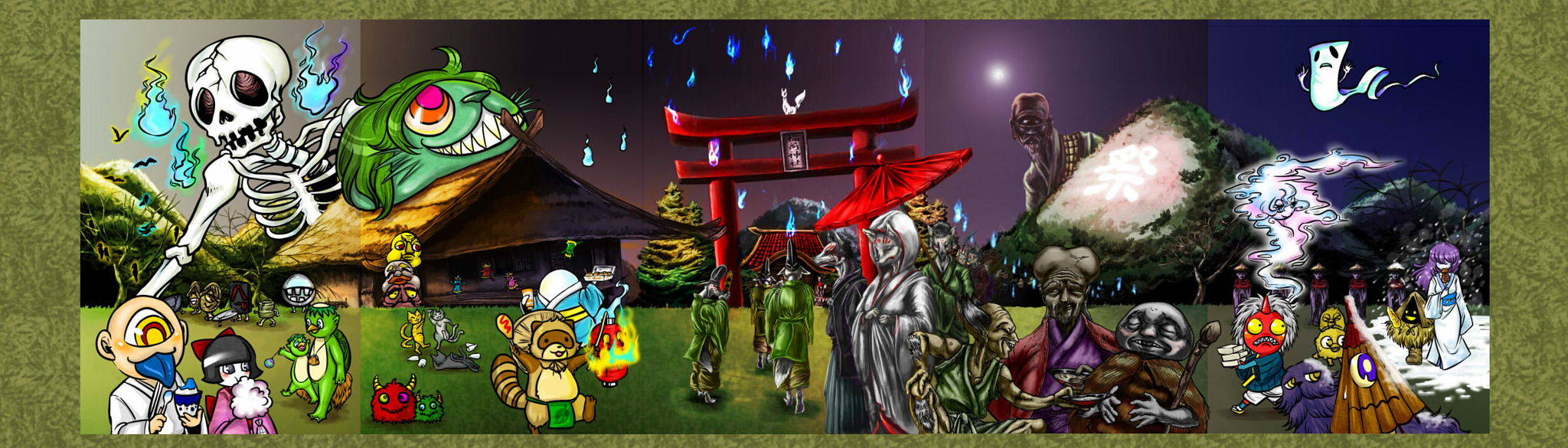 諸乃と隼路の合作になります。背景と中央のキャラは諸乃が担当し、左側と一番右は隼路が担当しました。