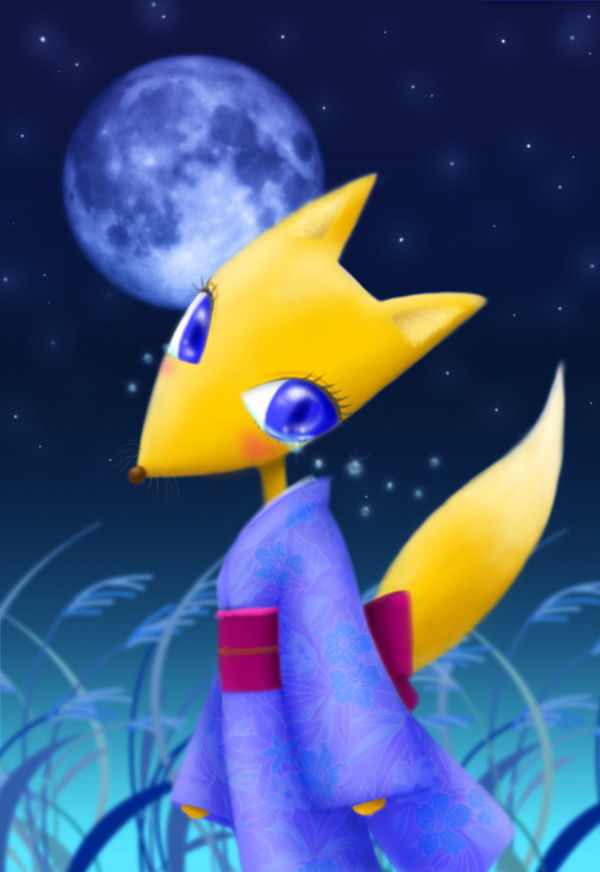 月ときつねのイラスト