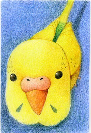 うちのインコのイラスト。色鉛筆で描きました。