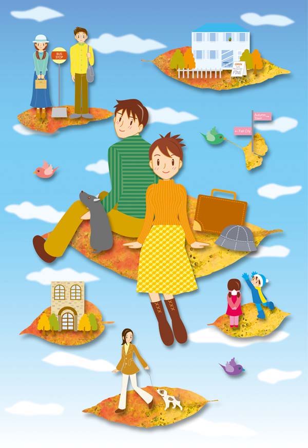 秋の街イラスト。雑誌の表紙に使っていただきました。