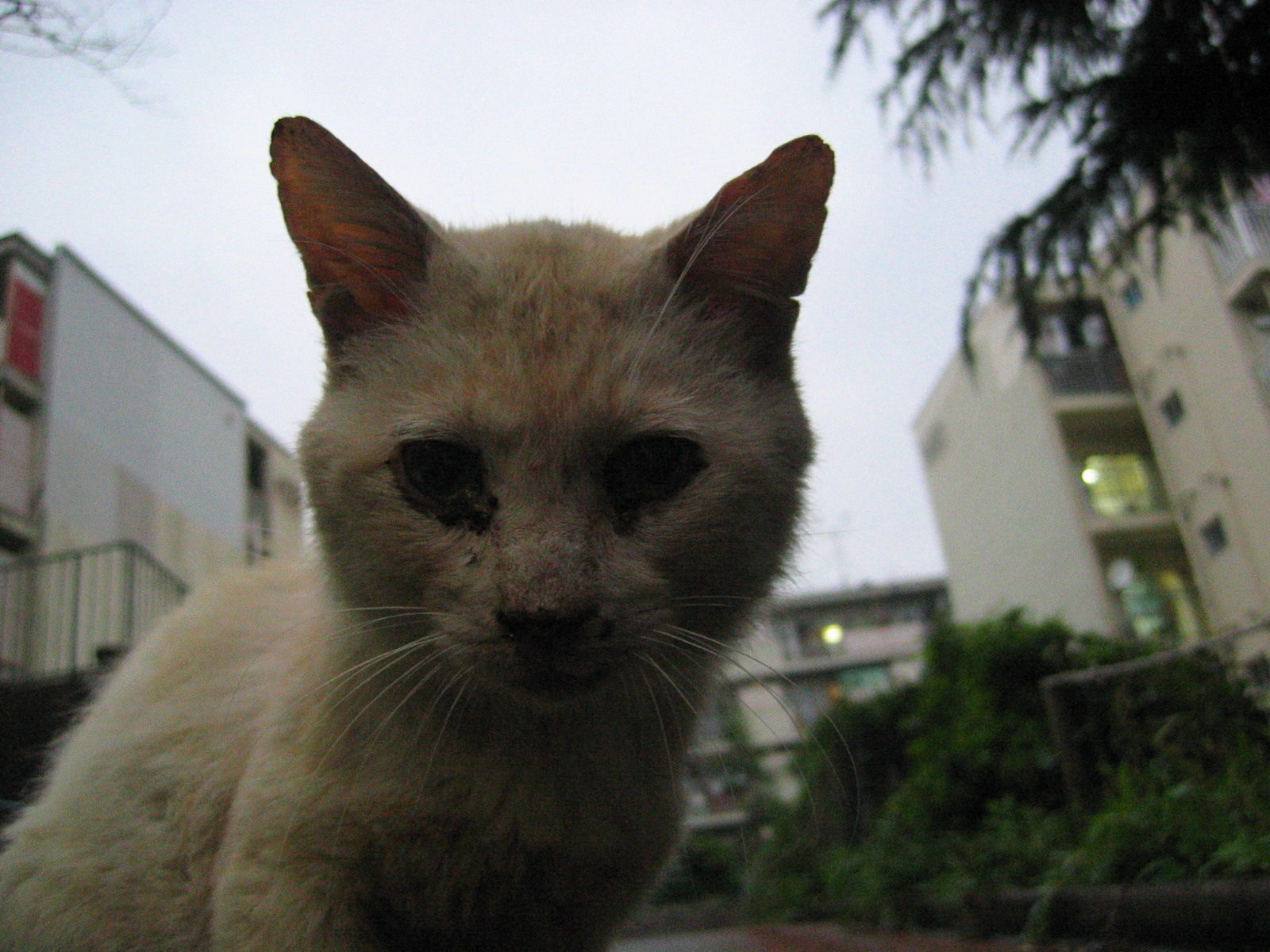 私の生まれ育った赤羽の桐ヶ丘団地で出会った。愛猫と背中合わせの街猫。