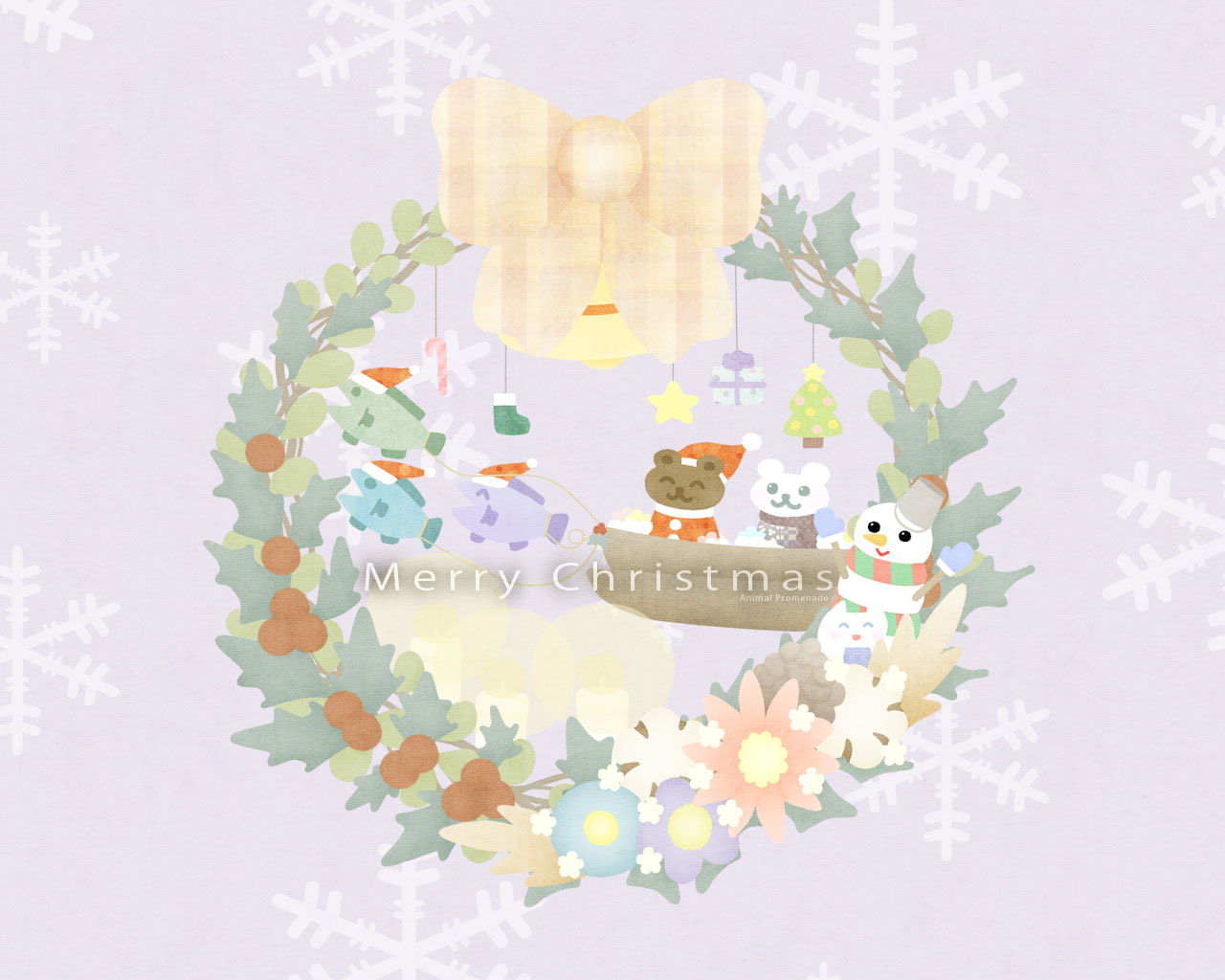 サンタくまちゃんとしろくまちゃんのクリスマスリース 1280x1024
