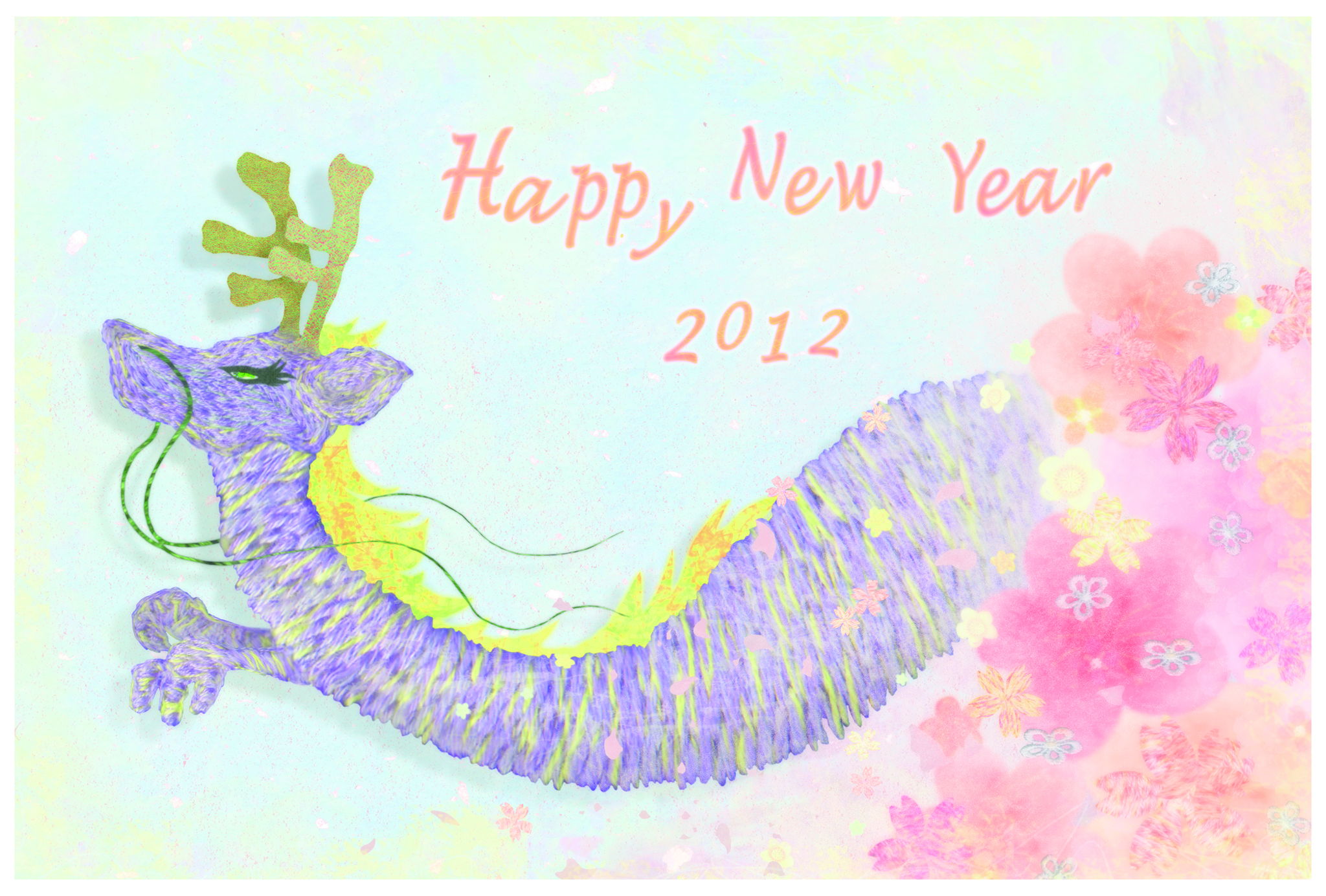 少し変わった色合いの、女性らしい年賀状にしました。