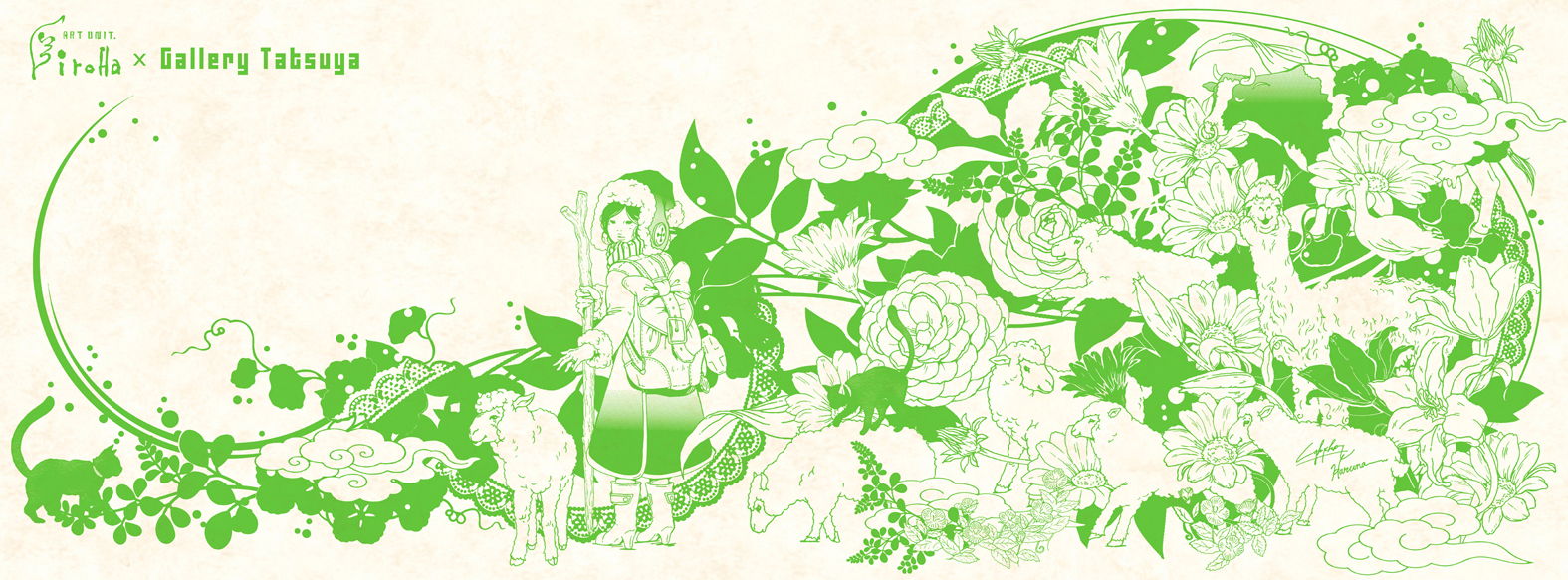【オリジナルてぬぐい用イラスト】 制作:くまたにたかし / 渡邊春菜 (鉛筆・ペン・photoshop)